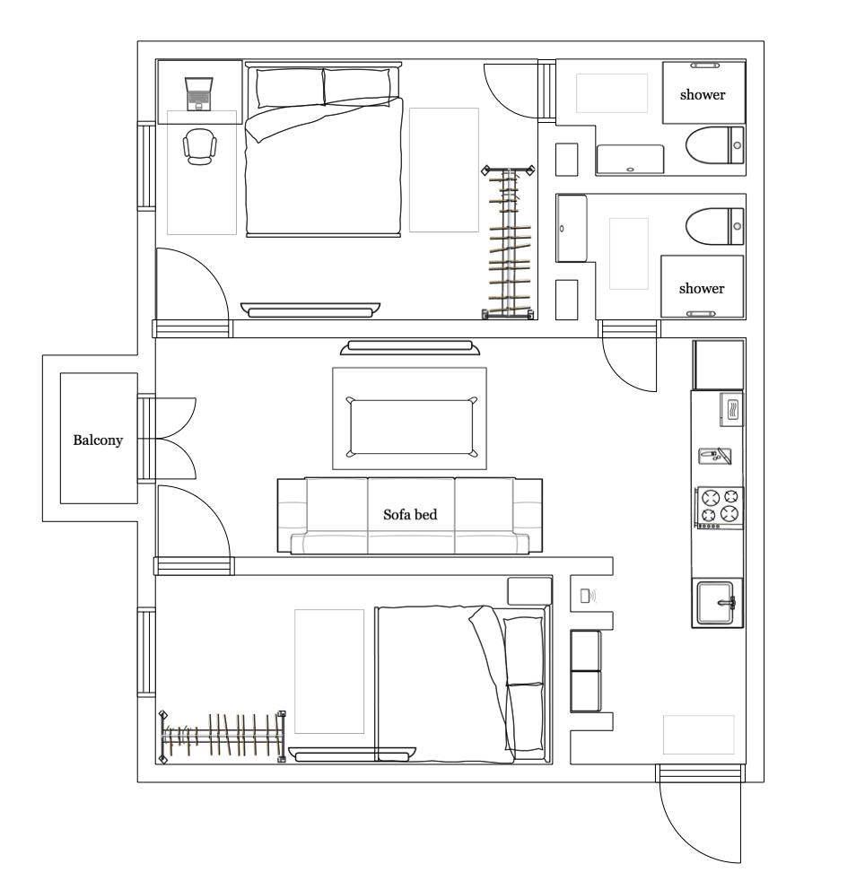 Shower cabin | 2 full bathrooms (2 shower + 2 toilets) |